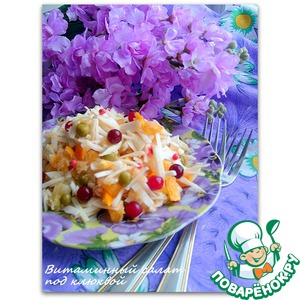 Очищаем и натираем на мелкой терке яблоко, смешиваем его с розовым перцем и клюквой. Заправляем салат |