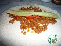 На середину выкладываем фарш, затем помидор, сверху-огурец. |