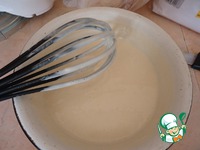 Замешиваем тесто на блины. Консистенция жидкой сметаны, так чтобы они у нас получились тоненькие. |