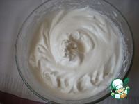 Холодные белки взбиваем с сахаром в крепкую пену. |