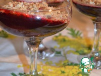 На свекольное желе укладываем крем маскарпоне и посыпаем смесью орехов и печенья. Ставим на пару минут в холодильник |