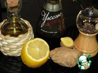 Приготовить заправку: смешать бальзамический уксус, оливковое масло, сок лимона, имбирь (если свежий - натереть на мелкой терке) и чёрный перец. |