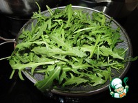 Фету порезать на небольшие кубики. Аккуратно смешать чечевицу с сыром Фета, томатами и оливками. Выложить на блюдо рукколу, сверху положить салат и полить заправкой. |