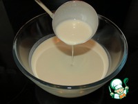 Взбить яйца, медленно ввести муку, молоко, соль продолжая взбивать, добавить растительное масло. |