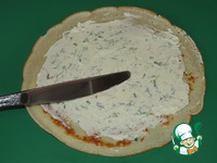 На блинчик выложить по 1 ст. л. сыра и разровнять. |