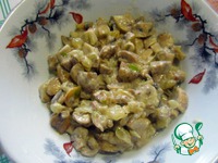 Для начинки обжариваем на сковородке нарезанные грибы с луком и тушим их в сметане. |