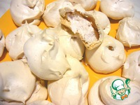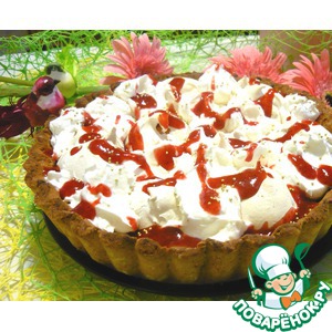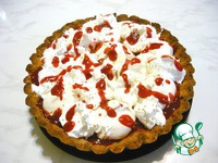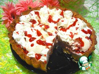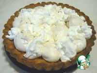 На поверхности торта раскладываем запеченное безе, между ним распределяем взбитые сливки. Запеченное безе и взбитые сливки необходимо разложить только перед подачей на стол, иначе безе растает. |
