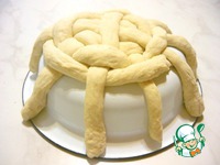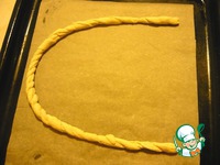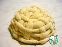 тесто разделяем на части и скатываем их в жгутики (не слишком длинные), затем начинаем плести корзину. Один небольшой кусочек теста оставляем для того, чтобы сделать ручку. |