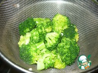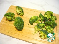 Брокколи разбираем на соцветия, разрезаем вдоль пополам или на четыре части, |