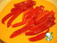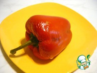 Перец отправляем запекаться в духовку на 7 минут, затем очищаем от кожицы, удаляем семена |