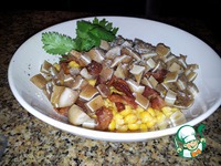 В тарелку кладем горох, сверху шкварки (жирком от бекона не забудьте полить) и ушки. Я люблю немного подогреть в мироволновке, чтобы ушки были теплыми. Обильно посолить и поперчить. |