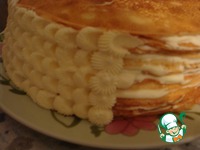 Сверху снова положить блин, смазать кремом и так далее. Последний блин я не смазывала кремом. |