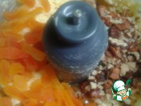 Вводим муку. Мелко режем курагу, грецкие орехи дробим. Добавляем в тесто. |