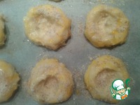 Снимаем печенье, даем остыть. Топим мармелад на водяной бане. Заливаем его ложечкой в углубления печенья. |