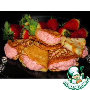 Описание: Блины с клубничной начинкой - нежный и вкусный десерт.