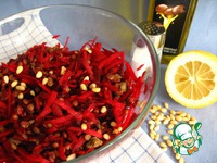 Собираем салат. В салатнике смешиваем тёртую свеклу и вареную чечевицу. Добавляем лимонный сок, соль, растительное масло и орехи. Всё перемешиваем. Салат готов. |
