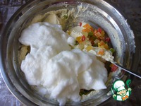 Добавить в творожную массу цукаты и взбитые белки. |