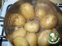 Тесто разморозить. Картофель очистить и размять его в пюре. |