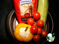 Подготовьте необходимые для приготовления блюда продукты: кабачок среднего размера, томаты черри, болгарский перец, рис, масло оливковое, соль |