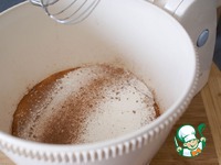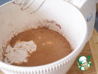 Добавляю просеянную муку с разрыхлителем и какао. Перемешиваю до консистенции густой сметаны. |