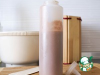 Часть шоколадного теста перелить в бутылку с отверстием, проделанным в пробке. |