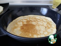 Выложить выпеченную решетку на ровную поверхность, накрыть светлым блинчиком, смазанным растопленным сливочным маслом, чтобы они немного склеились между собой. |