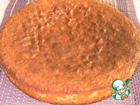 У меня форма большая диаметр 23 см и бисквит не очень высокий. Оставляем остывать. Когда остынет разрезаем на 2-3 коржа. |