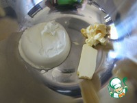 Далее приготовим крем тут можно готовить любой ваш любимый, я в этот раз решила приготовить с сливочным сыром. Сливочный сыр комнатной температуры взбиваем с маслом и ванилином. |