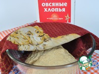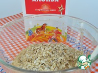 В рассол влить дрожжи, всыпать сахар 2 ст. л., влить солод и перемешать. Всыпать 300 граммов муки, перемешать и добавить овсяные хлопья. |