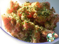 Куриные ножки порубить на не большие кусочки, посолить, посыпать перцем, специями, сушеной зеленью |