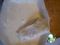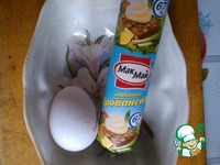 Когда филе приготовили отложим в сторону. Беремся за приготовления кляра: смешиваем майонез, яйцо и специи все взбиваем. |