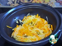 Лук, чеснок и морковь обжарить в растительном масле. |