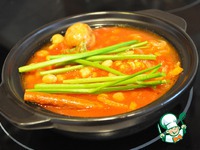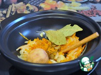 Итак, вернемся к блюду. Если вы думаете, что тажин это исключительно блюдо для приготовления мяса или птицы, то вы сильно ошибаетесь. Его физические свойства позволяют прекрасно готовить любые блюда. В нем готовится всё на небольшом огне длительным томлением, с добавлением разных специй, вяленых и соленых лимонов, маслин, оливок и даже сухофруктов. Рецепт этого блюда я привезла с кулинарного фестиваля Test of Dybai. Рецептом со мной любезно поделился шеф, который проводил тестирование североафриканской кухни. Он был настолько любезен, что не только рассказал, но и показал, как блюдо готовится. Потом я ночь ворочалась, а на следующий день поехала и купила тажин. Теперь с удовольствием представляю блюдо вам!