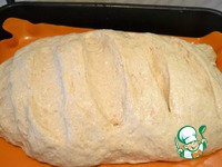 Формируем батон, выкладываем его на смазанный противень, делаем надрезы и убираем на расстойку в теплое место на 30-35 мин. |