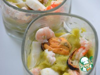 Оформите кальмарами и мидиями. Посыпьте мелко нарезанной зеленью. Приятного аппетита! |