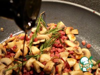 Открою вам маленький секрет, о грибах приготовленных таким способом, только без бекона. Это замечательная закусочка под рюмочку «чая» на хлебцах, это замечательная добавка к салату из свежих листьев салата и зелени. Можно просто смешать с пастой. А еще её можно приготовить заранее а для этого еще горячую, положить в чистые баночки, вместе с розмарином и залить растительным маслом., что-бы грибы были покрыты им. Закрыть и хранить в холодильнике до 2 недель. Ну разве не палочка- выручалочка. А когда вы эти грибы съедите, то масло не выливайте а используйте для заправки салатов. |