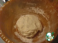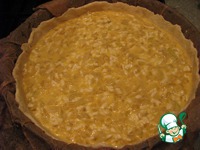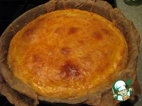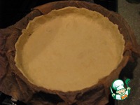 Большую часть раскатываем, укладываем в форму (у меня 24см), предварительно выстланную сырым пергаментом (чтобы легче было доставать), делаем бортики. |