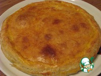 Дайте ему немножечко остыть. Нарезаем и подаем!!! Очень нежное тесто, начинка - воздушное суфле. Причем вкус лука абсолютно не чувствуется!!! |