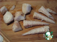 Нарезать рыбу небольшими кусочками. У меня рыба была отварена. |