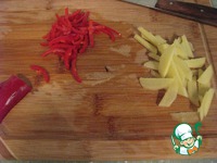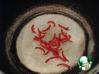 В кастрюле разогреть масло, добавить перчик и готовить 30 секунд. |