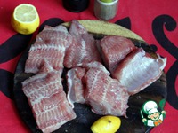 Филе рыбы ( у меня - сом) нарезать порционно, посолить и поперчить белым молотым перцем. |