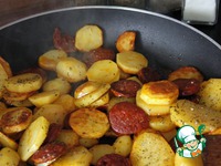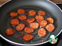 Далее готовится всё очень быстро, поскольку на испанской кухне жарко стоять... ***Обжарить на сковороде (можно добавить ещё 1 ст. л. оливкового масла) салями чоризо по 1 мин. с каждой стороны. |