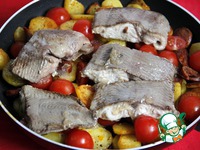 Выложить сверху подготовленное филе рыбы, уменьшить огонь до минимума и дать настояться под крышкой 2-3 мин., выключить огонь и дать постоять ещё 2-3 мин. |
