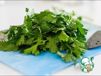 Пока мясо готовится, сделать маринад. Нарубить петрушку. |
