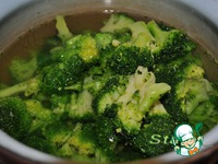 Брокколи разделить на небольшие соцветия и отварить 3-5 минут в подсоленной воде, откинуть на дуршлаг. |