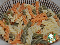 В этой же воде отварить макароны, тоже выложить в дуршлаг, промыть холодной водой. |
