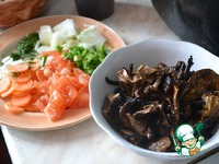 Готовим Наш набор ингредиентов:)) полезная перловка "Мистраль", овощи, грибы, специи. |