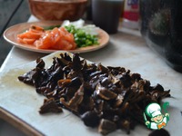 Сливаем воду с грибов и мелко режем! (водичку оставила для добавки в блюдо) |