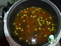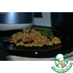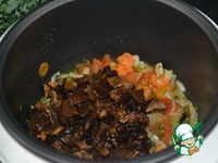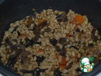 Заливаем остатками "бульона" с грибов и водой, в общей сложности на два мультистакана (100 г примерно) я добавляла 3 мультистакана воды |