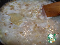 Залить горячей водой или овощным бульоном. Посолить, добавить лавровый лист. |